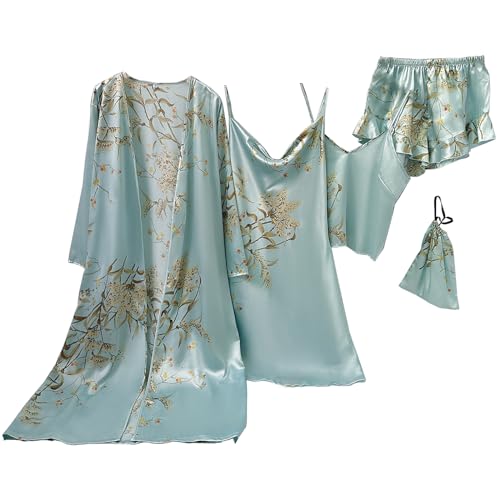XNASU Femmes 5 Pièces Lingerie Soat Chemise Pyjama Satin Ver...