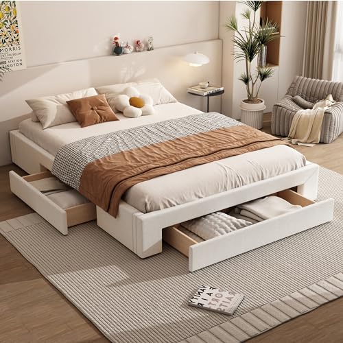 KecDuey Lit rembourré 180x200 cm lit double cadre avec tiroi...