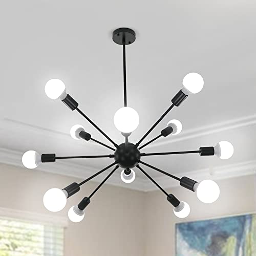 Lumière Chandelier Noir Sputnik 12 Lumières Suspension Indus...