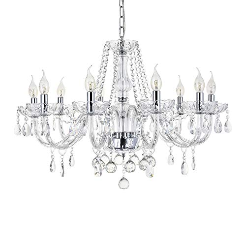 Lustre à bougie en cristal à 10 bras avec motif goutte de pl...