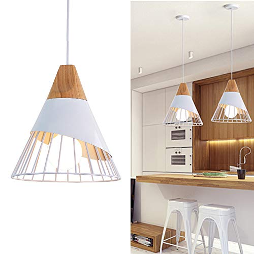Luminaire Moderne Cône E27 Suspension Fer Bois Vintage