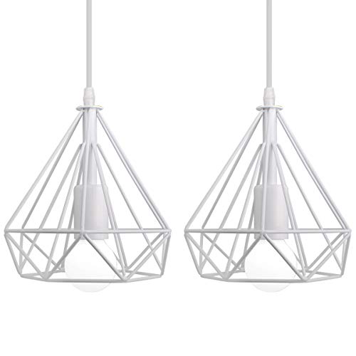 Luminaire Lustre Suspension Diamant E27 Vintage, 20CM Blanc