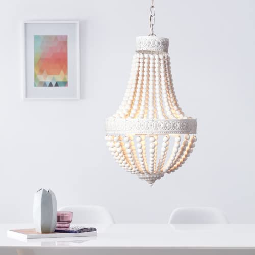 Lustre à 3 flammes lampe suspendue métal/bois blanc 40cm