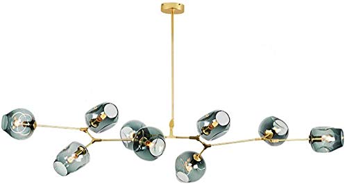 Lustre moderne, éclairage doré, 12 lumières, abat-jour bleu,...