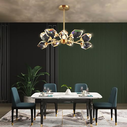 Lustre LED moderne en cristal, plafonnier avec 9 têtes dorée...