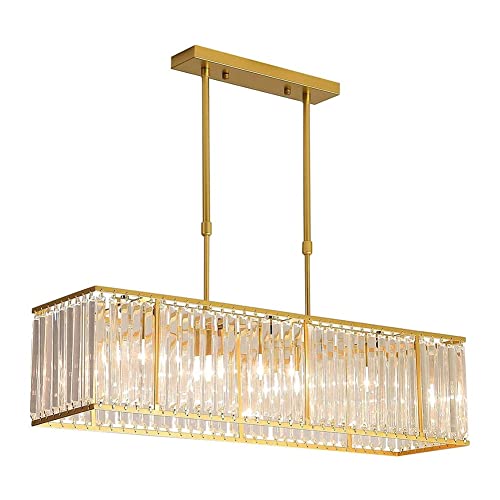 Lustre cristal rectangulaire, suspension verre doré.