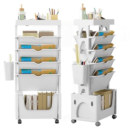 L'étagère mobile à livres, 5 niveaux, roulettes, rangement r...