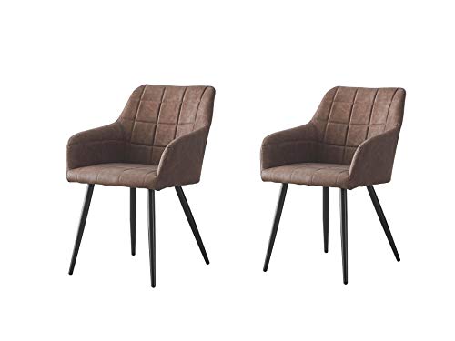 Chaises Salle Manger Lot 2 Accoudoirs Simili Cuir B-Marron