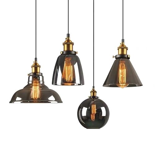 Vintage lampe suspendue fumée verre cristal lustre salle à m...