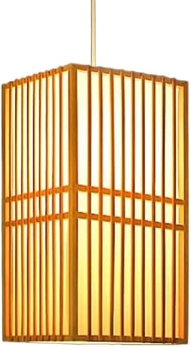 Lampe à Suspension Carrée Bambou, Abat-Jour, Éclairage Suspe...