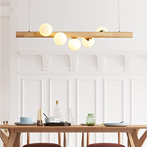 Lampe suspendue bois LED réglable à hauteur, éclairage vinta...