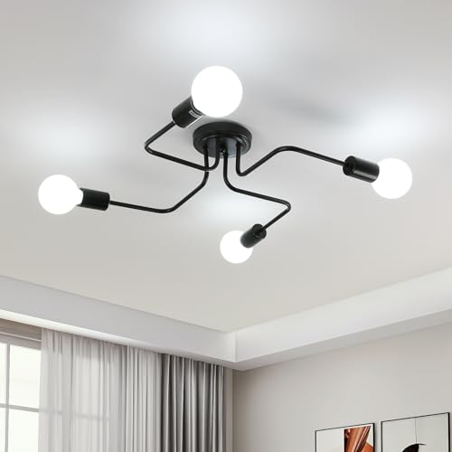 Plafonnier moderne en métal à 4 lumières, structure simple,...