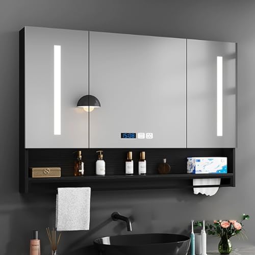 Armoire à Pharmacie de Bain HD avec Miroir, Vanité LED, Dése...