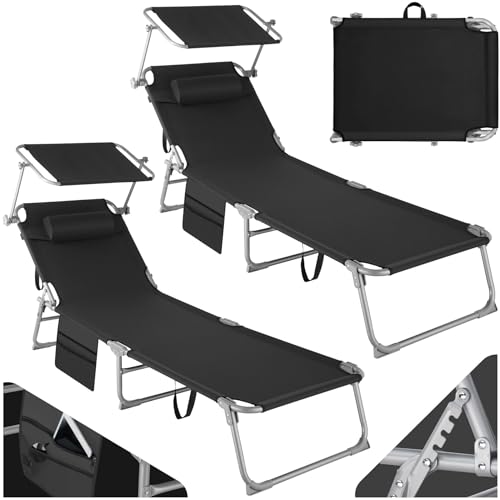Tektake Set de 2 Chaise Longue Pliante Bain de Soleil Exteri...