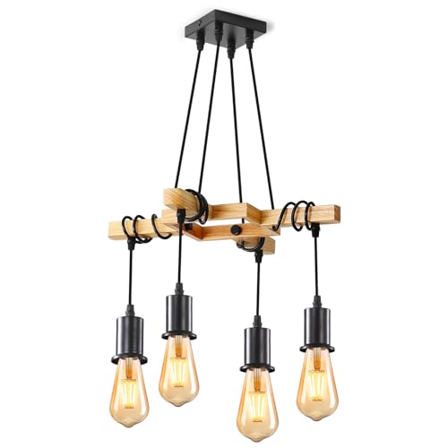 Suspension Luminaire Industrielle, à 4 Lampe Lustre en Bois...