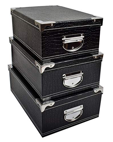 2. Grande boîte de rangement en carton noir, 3 tailles, méta...