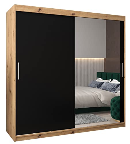 ABIKSMEBLE Maroko 200 Armoire Coulissante Noir Matte Artisan...