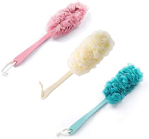 Lot de 3 brosses de bain avec éponge et manche long en plast...