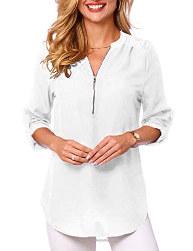 Chemisier femme V col chic manches longues blouse blanche