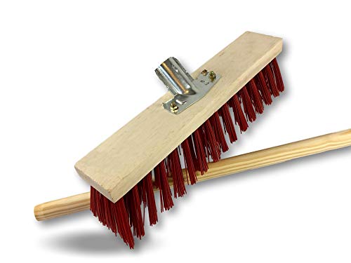 Balai cantonnier manché, PVC rouge, brosse 28mm, manche bois...