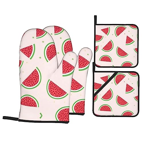Ensemble de 4 pièces motif pastèque, gant isotherme épais ma...