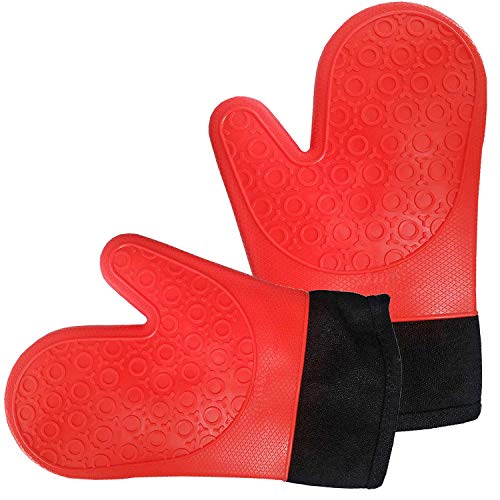 Lot de 2 Maniques Silicone Anti-Chaleur Coton Doux Rouge