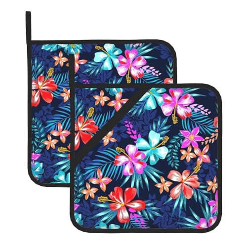 Ensemble de 2 maniques isolées carrées à imprimé floral bleu...