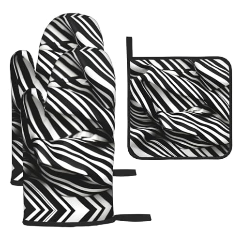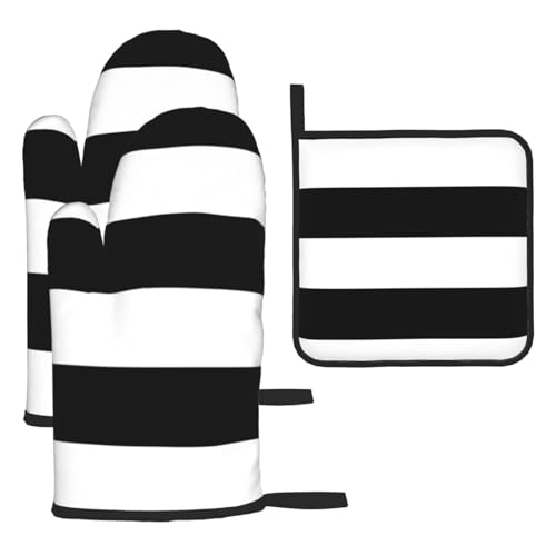 Ensemble de gants de cuisine maniques rayures noires blanche...