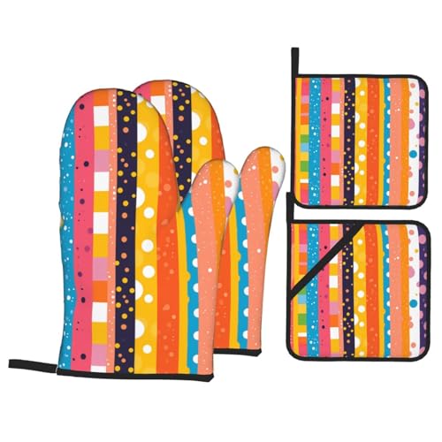 YYHWHJDE Lot de 4 maniques et maniques à rayures arc-en-ciel...