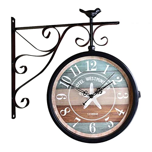 Horloge murale double face rétro antique horloge murale euro...