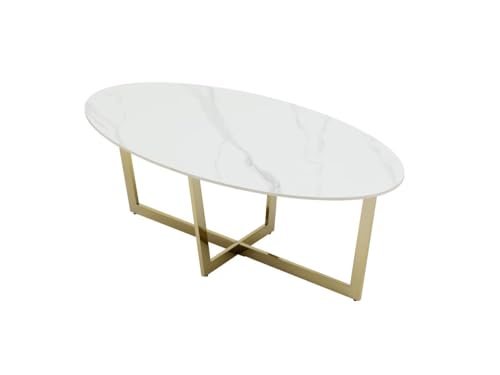 Vente-Unique Table Basse Marbre Acier Effet Blanc Doré