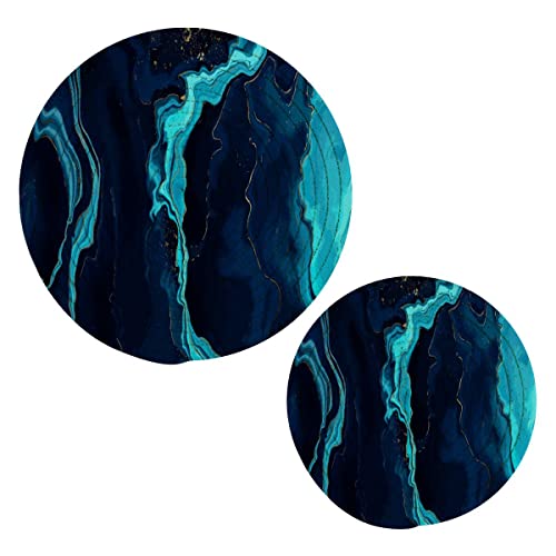 2 dessous de verre ronds - Encre effet marbre bleu sarcelle...