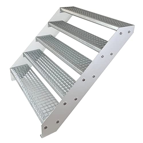 Premium Caillebotis acier Escalier à limon 5 Marches Entière...