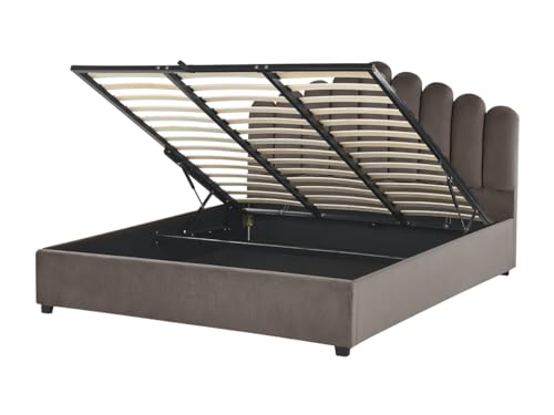 Lit Rangement Velours 180x200cm Beige Rangement Haut