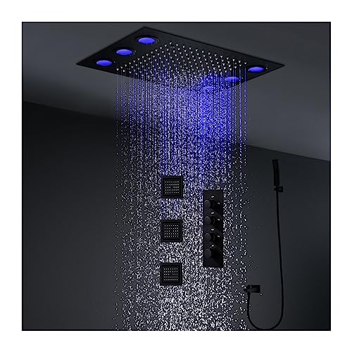 Système de douche pluie noir 20x14 LED, ensemble de douches...