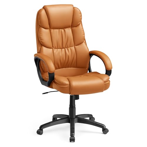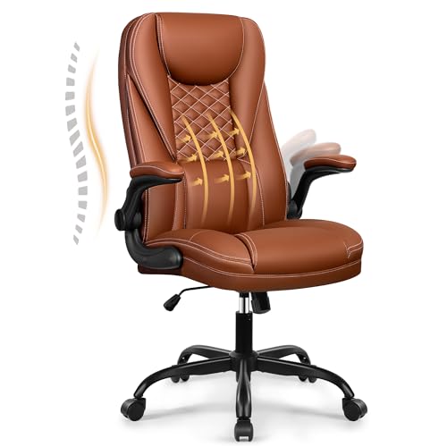 Chaise bureau ergonomique en cuir marron réglable hauteur