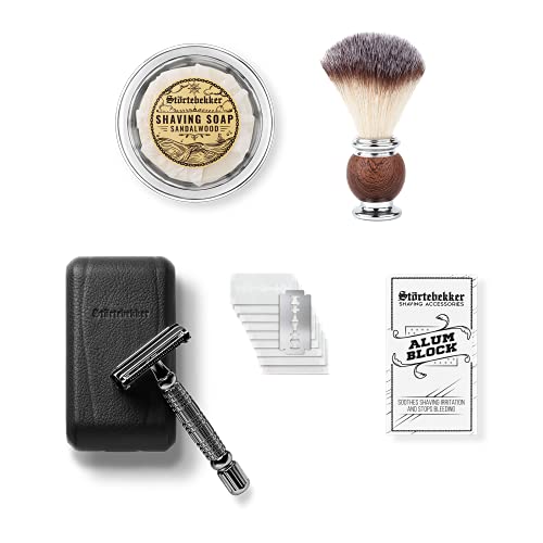 Rasoir de sûreté, set cuir, blaireau, bol, savon, pierre d'a...
