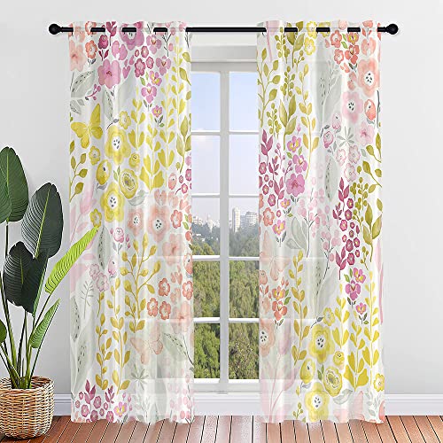 Motif Floral Rideau Voilage Lot 2, Rideaux Intérieurs Fleurs...