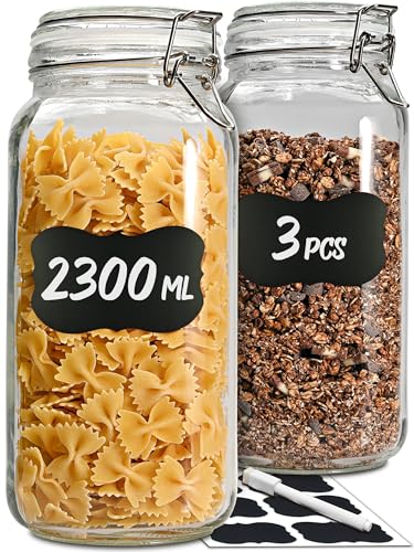 3 Grandes Bocaux en Verre Hermétiques 2L, avec étiquettes, j...