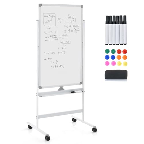 GOPLUS Tableau Blanc Roulant Magnétique 60x100cm avec Hauteu...