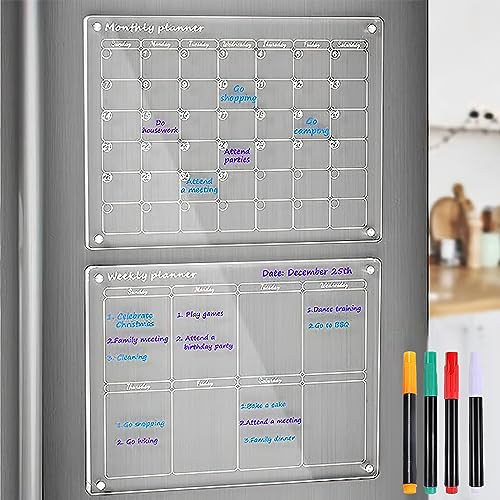 Calendrier mensuel et hebdomadaire magnétique en acrylique p...