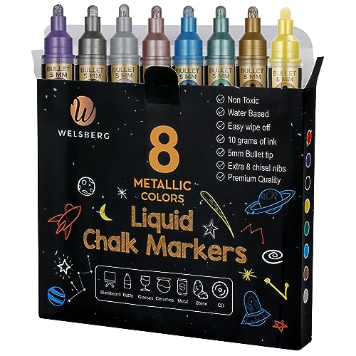 Lot de 8 Craies Liquides Métalliques Welsberg pour Tableau N...