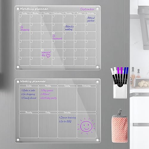 Calendrier mensuel et hebdomadaire magnétique en acrylique p...