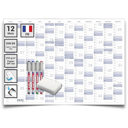 ✔️ 2 Grand calendrier mural 2025 au format XL 140,0 x 100,0...