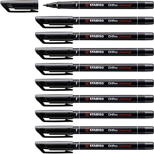 Marqueur permanent STABILO OHP - Lot x 10 - Noir (encre perm...