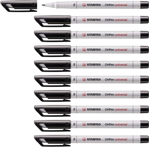Marqueur STABILO OHP - Lot x 10 - Noir (encre non-permanente...