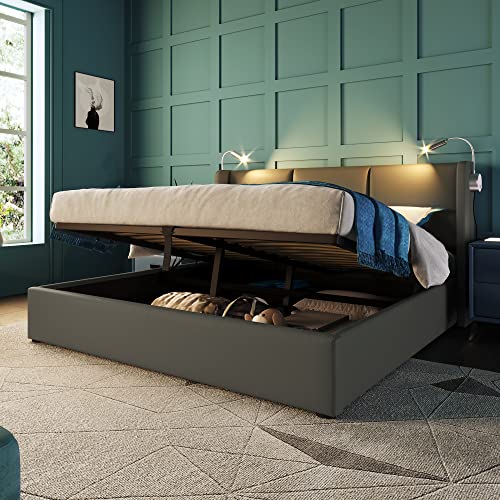 Lit Double Polyvalent avec Lit Rembourré à Lumière LED, Port...