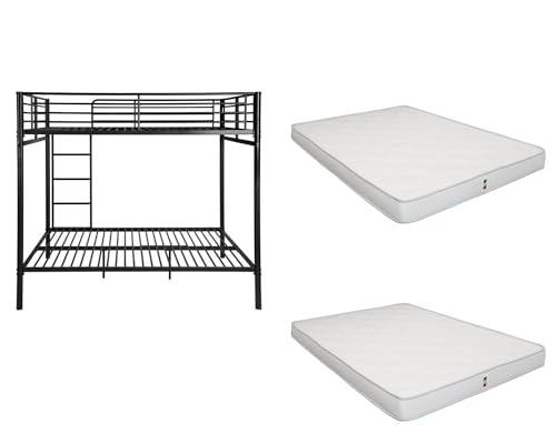 Lit superposé 4 places noir avec deux matelas mousse 140 x 1...