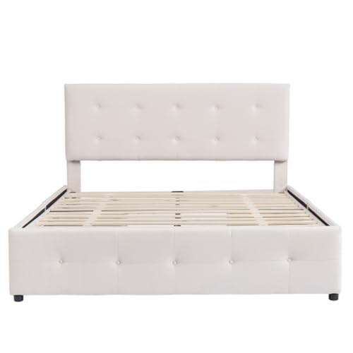 KOMHTOM 140x200 cm Lit Double Rembourré avec 4 Tiroirs de Ra...