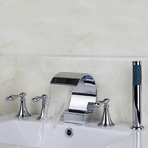 Robinet de salle de bain mélangeur cascade chromé ensemble 5...
